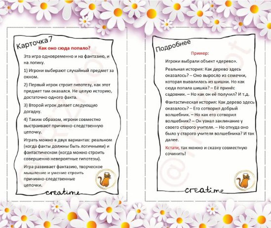 А вот занятия по ТРИЗ-педагогике, которая нацелена на развитие креативной личности, сильного нестандартного мышления и управляемого воображения, такие занятия есть и успешно проводятся, как в клубах по развитию, так и на разных online курсах!