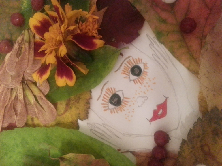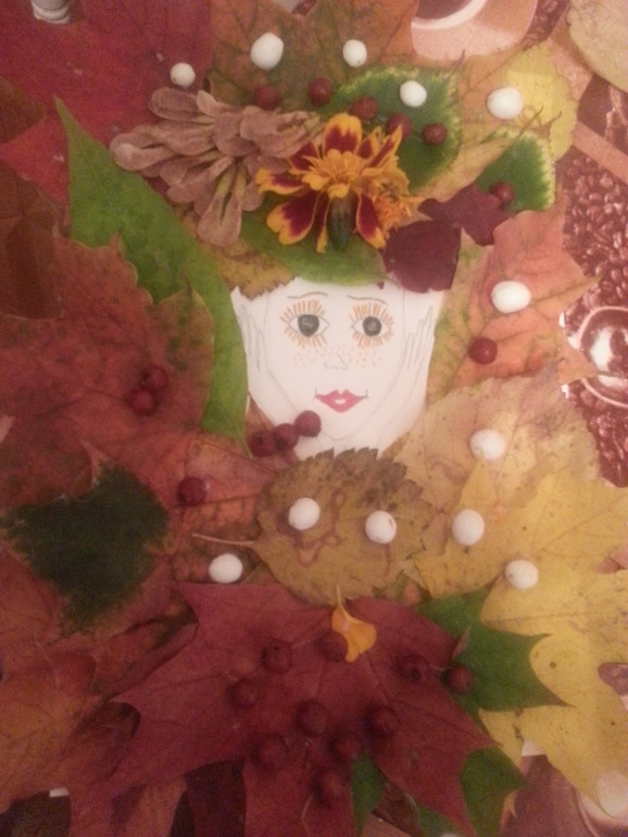 Марафон 2015Сделали мы с сыном картину "Девочка-осень". Можно увидеть на ней все краски осени: жёлтый, красный, оранжевый, лимонный, золотой, бордовый, багряный, розовый, коричневый. Все эти цвета в осенних листьях можно увидеть.