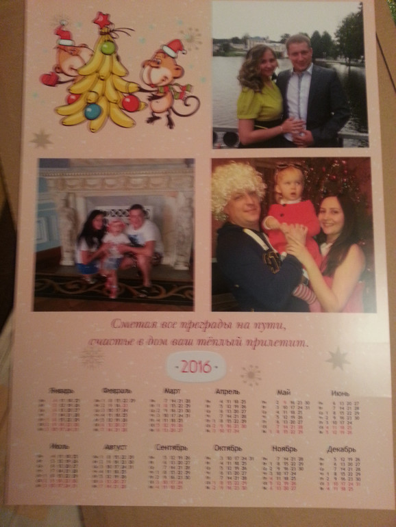 Другу мужа и его семье тоже сделала календарь, только настенный. Фото не очень, на самом деле получился ярким и чётким.