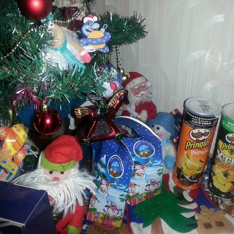 Посылку еле-еле донесла до дома) Часть подарков (вкусные подарочки и мужу) сразу положила под ёлку, часть спрятала на время)) Мальчишки ужасно обрадуются и набору фокусов, и кристаллу. Свой гель для душа (обожаю всё пахнущее))) и полотенчико сразу прибрала.