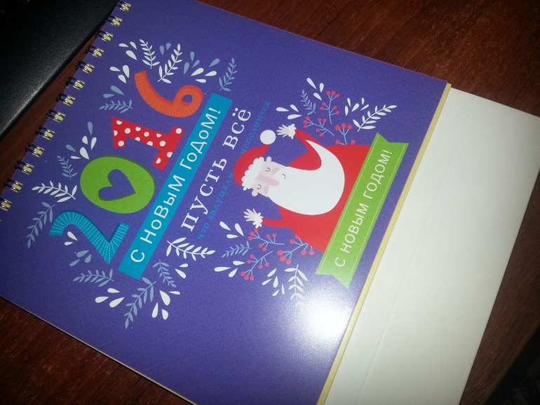Главный подарок подарил своему главному другу из класса (деревянные новогодние игрушки для росписи и кружку с принтом Звёздных воинов, друг тоже помешан на них, пищал от восторга) и его маме (книгу и календарь, который делала в нетпринте, настольный). Подруге очень понравился календарь, так как всё любит такое handmade, и очень сентиментальная, аж прослезилась, когда читала поздравления на каждом листочке.