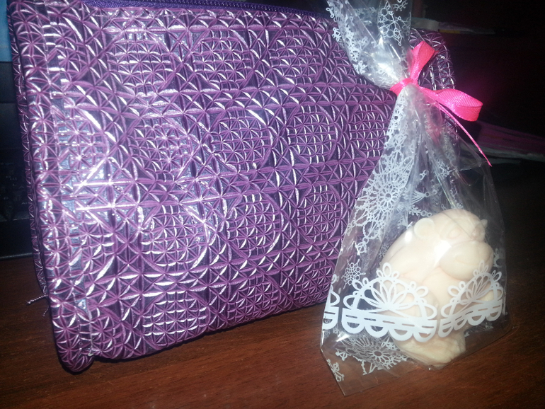 Потом я побежала смотреть свои : клёвая косметичка с вкуснопахнущими чудесными средствами для ванны, мыльце Обезьянка, игрушка на ёлку Пироженка, украшение. Супер!