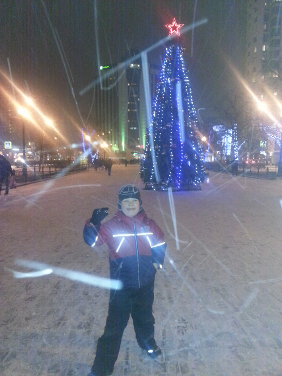 А потом, где-то через полчасика, приехал Дед Мороз. Красивый, говорил хорошо. Максим был в восторге. И снег сразу пошёл)
