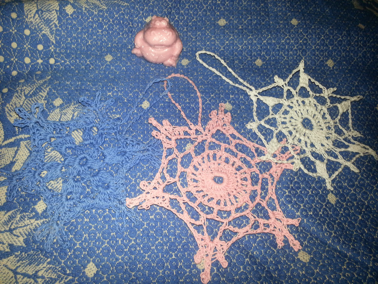 Мы же кроме картины купили снежинок на ёлку, накрахмаленных, и мыльце-бегемотика.