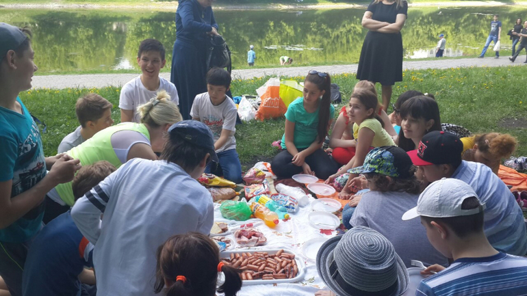 Артёму очень понравилось. Играли в футбол, бадминтон. Одна девочка принесла гитару, песни пели. С одноклассником рыбу ловил. Играл в Уно. Жарил сосиски) Во общем развлечений на 4 часа хватило. Доволен жутко!)