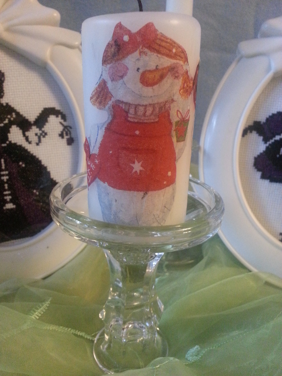 А затем в том же фиксе приглядела стеклянные подсвечники. Их можно ставить и с длинными свечами, а если перевернуть, то и с широкими. Вот нашла новогоднюю, чтобы показать)