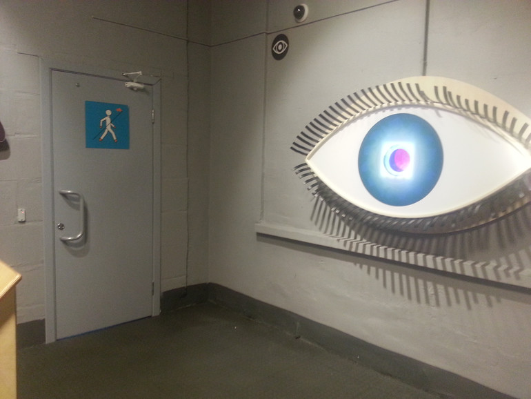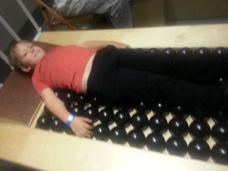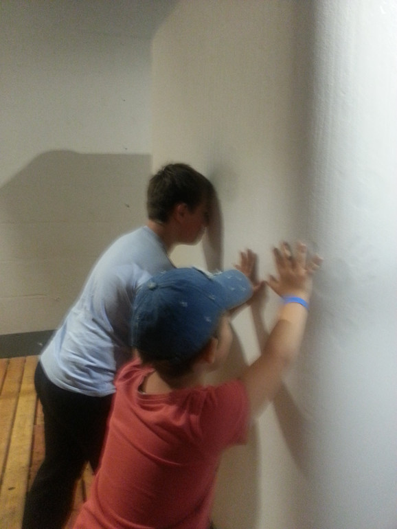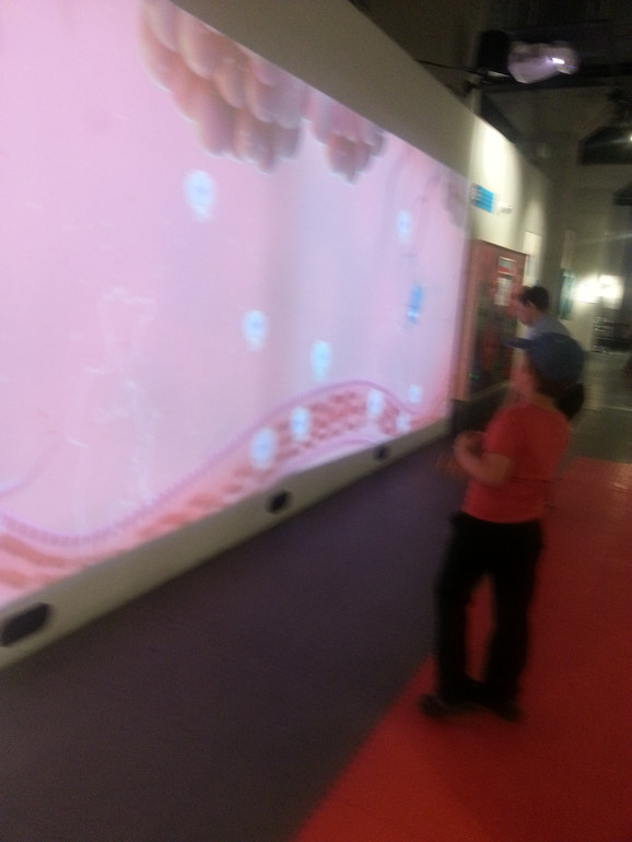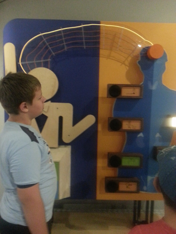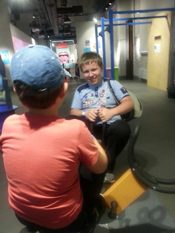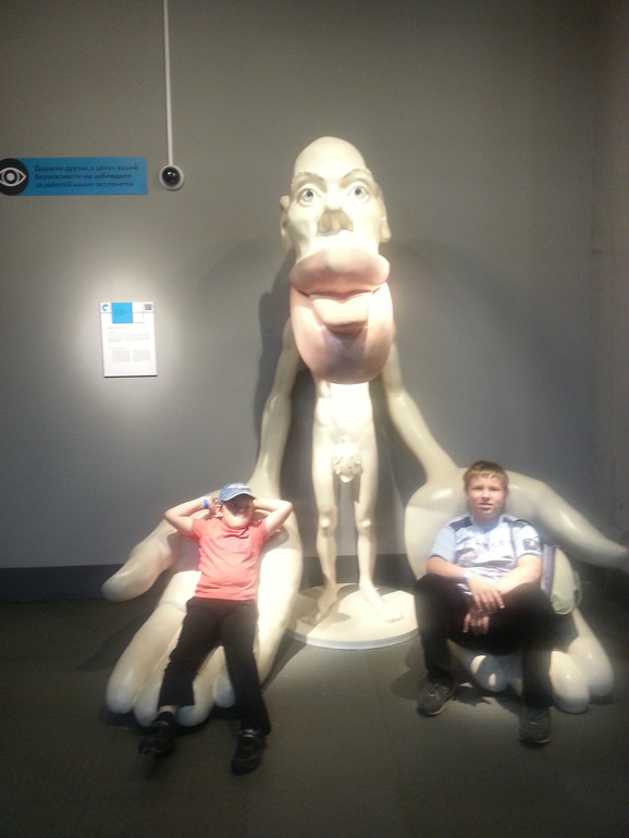 Сначала попали в зону "Измерь себя". Измерили рост и вес. Максим весит как императорский пингвин)