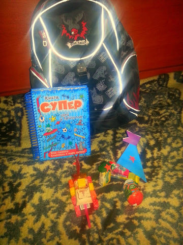 Сладости-транспорт делала сама с помощюь клея и бумаги. Максим сначала подумал, что это игрушки)))