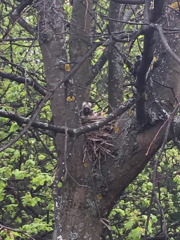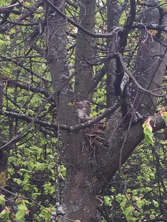 Старалась не привлекать внимание прохожих своим фотографированием, что-то опасаюсь я за судьбу птенчиков в такой непосредственной близости от людей... Даже Маша, не смотря на мои увещевания, пыталась их погладить, потрогать, домой забрать. Что уж говорить о любопытных мальчишках, которые с целью изучения всего живого могут причинить им вред. Хоть бы листва поскорее их скрыла от человеческих глаз...