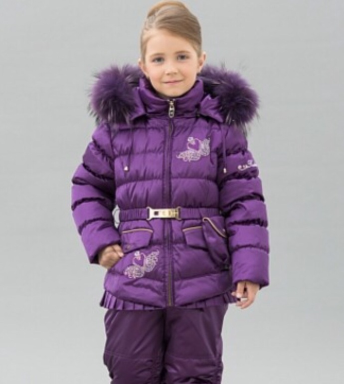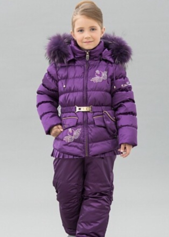 Куртка с двойным пуховым пакетом, прилегающего силуэта. Центральная застежка на открытую тесьму-молнию, с нижней ветрозащитной планкой. Воротник стойка. Рукав втачной, регулируемый по длине отворотными манжетами с внутренними ветрозащитными трикотажными напульсниками. Перед, спинка и рукава стеганные горизонтальными переборками на резинках. На нижней части переда боковые прорезные карманы. Капюшон съемный на молнии, с регулируемой кулисой.