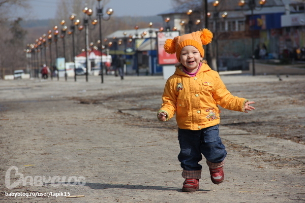 Здорово! Снега уже нет! И Лера такая уже большая - не верится... Передавай от нас привет своим родителям и родному городу ;)