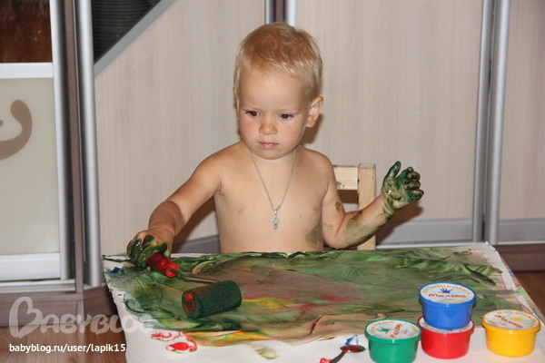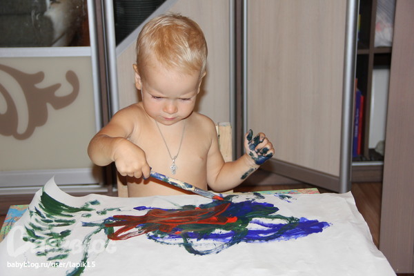 И пробовали рисовать кисточкой гуашью - полный восторг