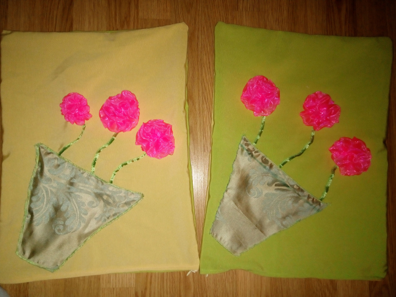 Натворила я значит пару наволочек с яркими цветами. А началось с того, что когда мама была у меня в гостях, то увидела в одном из журналов по рукоделию наволочку с цветами, и сказала, что хотела бы почти такую же. Ну вот после этого она и родилась, буквально за пару вечеров.