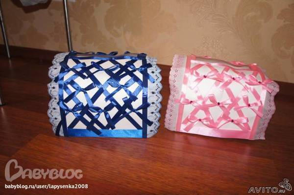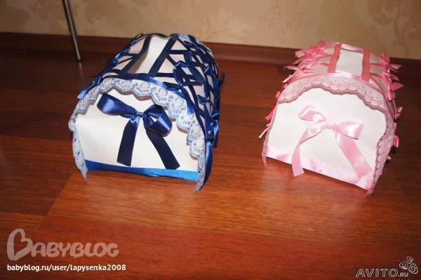 отдам для конкурса на свадьбу ( конкурс каким полом будет первенец) коробочки использовались, есть дефекты (в некоторых местах помятости, не хватает на розовой коробочки несколько бантиков, но у кого есть руки, можно все сделать! ОТДАТЬ МОГУ ЧЕРЕЗ НЕДЕЛЮ..ТАК КАК НАДО ПРИВЕСТИ ИХ С ПОДМОСКОВЬЯ...
