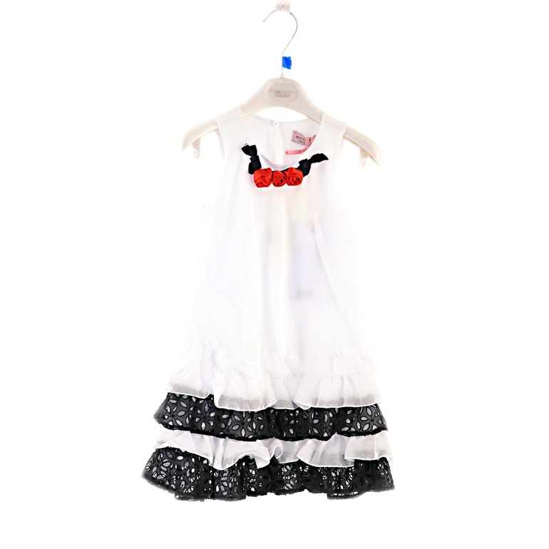 Летнее трикотажное платье MONNALISA коллекция Лола. Размер 4(104). Юбка сделана баллоном, на груди кармашек с Лолой украшенный красными стразиками. 100% cotton.