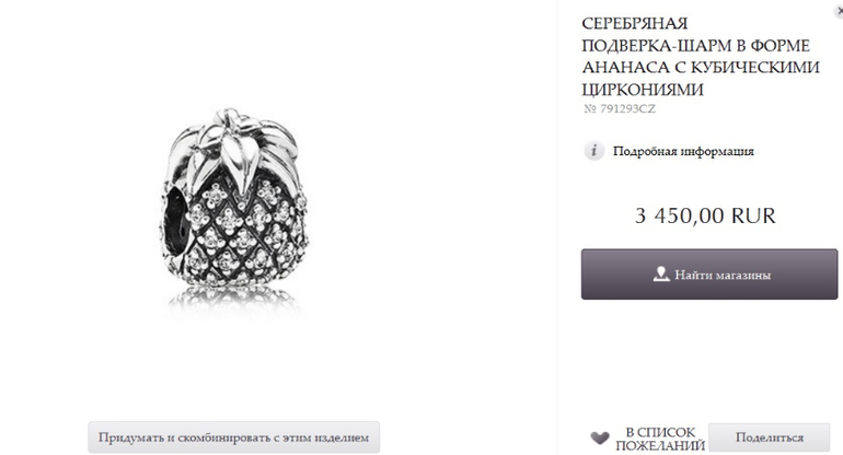 Ананас. Новый. 2800 рублей. Очень красивый, весь в кристаллах. Мне не подходит по цвету, ношу только комбинированные шармы серебро+золото.