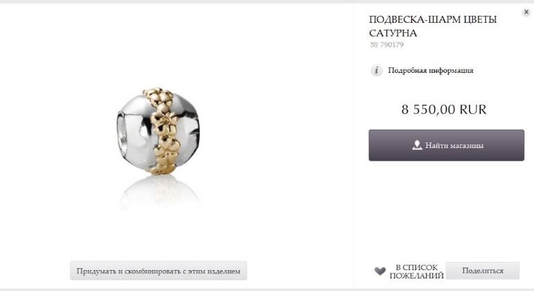 Один из моих любимых шармов Цветы Сатурна. У меня их два, но парой не ношу, поэтому один решила продать. Серебро, золото. В Москве стоит 8550 рублей. Б.у. в отличном состоянии.