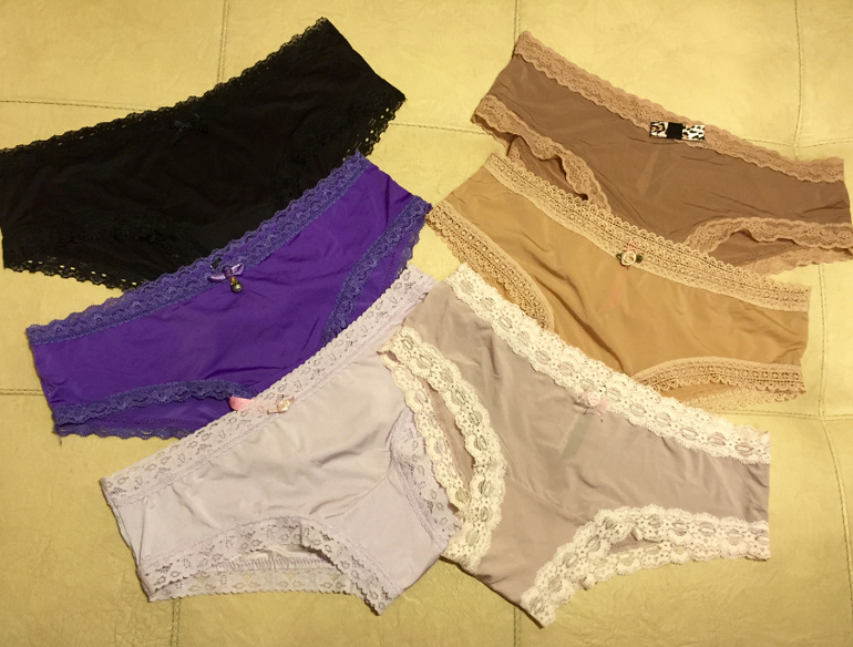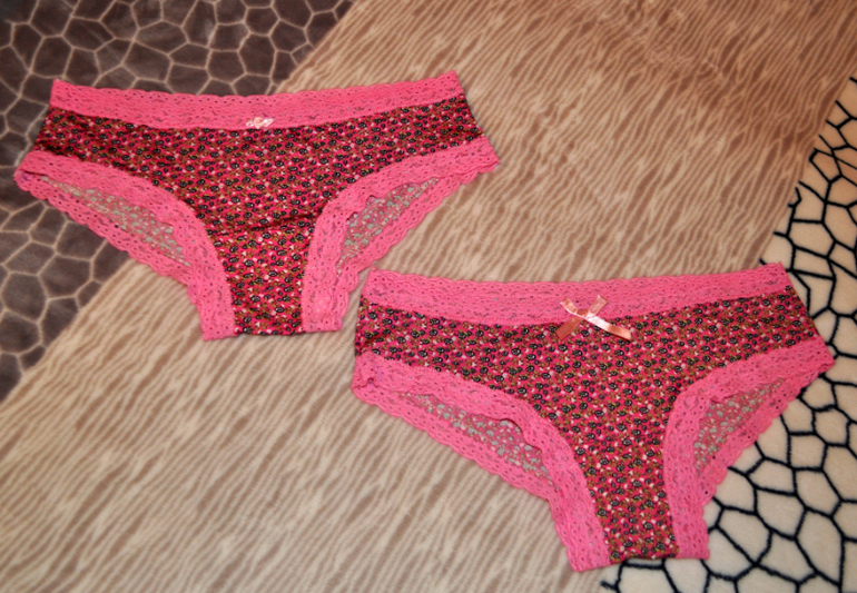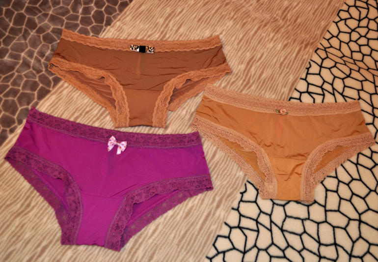 И двое этих в цветочек с розовым кружевом и тигровые с бежевым