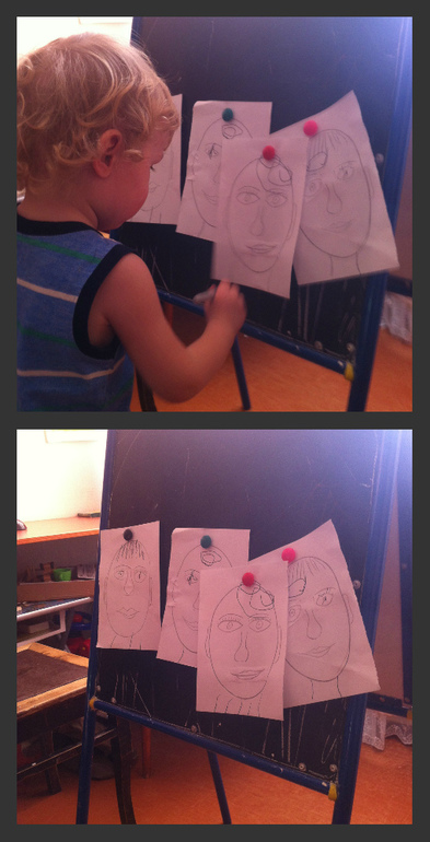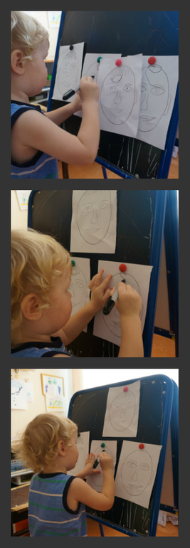 - объяснила что данные изображение называются портретами, затем Саша в течении дня подходил и говорил "Мои портреты" (сам делал);