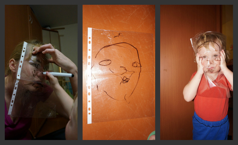 - рисовали портрет мамы, свой отказался не в какую, но мамин примерил с удовольствием)