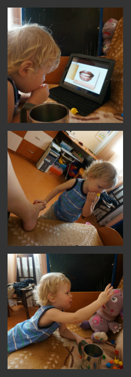 -с пазлами "Составь портрет" как то не очень получилось, сам не хотел, я ему подавала части лица и Саша лишь их соединял ( в другой раз как нибудь повторим, когда настроение будет))