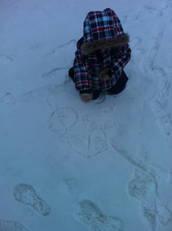 - и закончился наш день человечком во весь рост, заставлял обводить себя несколько раз) прячится чтоб не фотографировали ;)