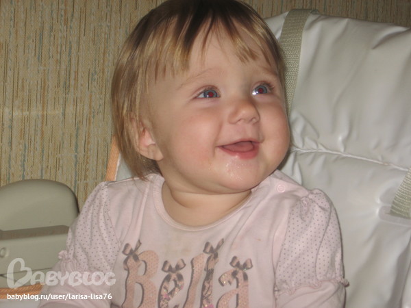 Какая лапушка!!! И сколько волос!? А мы лысые ходим почсти...а как у вас зубками, интересно это связано или нет, т.к. зубиков у нас тоже нет...