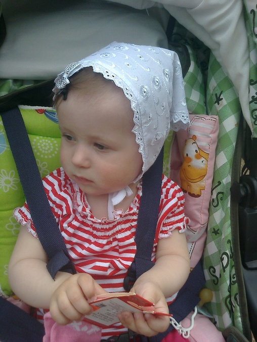 Только Сегодня пришла в голову одна вещь, а ведь в нашей семье есть обычай связанный с первыми шагами. Я всегда считала это само сабой разумеющимся, а когда сказала мужу, он очень удивился. Суть в том что малыша который вот - вот пойдёт ставят на ножки, перед ним садится кто нибудь из родителей ( в пару метрах) и зовёт его к себе. А в это время кто нибудь между ножек малыша режет невидимые путы. Ляльку отпускают и он идёт. Осечек я не помню. Видимо это от предков кочевников пошло. И немного фоток