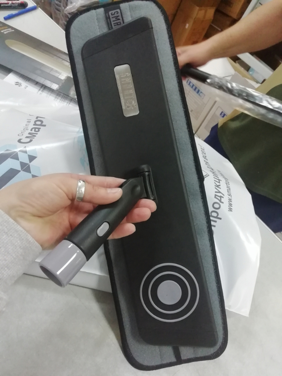 Платформа из особо прочного пластика черного цвета обладает большой степенью подвижности и прочности. На платформе имеется металлический лейбл компании SMART, защищающий от подделок и придающий еще более стильный вид. Швабра «Premium» оснащена специально разработанной инновационной платформой с уникальным крепежным слоем, позволяющим насадке плотно прилегать к поверхности платформы. Это обеспечивает максимальную очистку поверхности. Помимо этого на платформе имеется круглая зона повышенного воздействия. Надавив ногой на прорезиненную зону, можно оттереть стойкие загрязнения на полу.