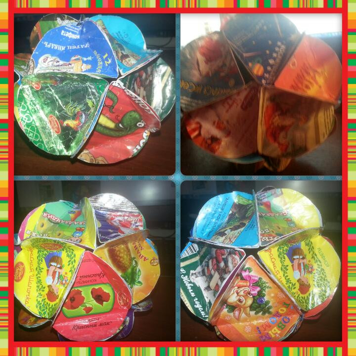 Спасибо. Домик чудесный! Мы сделали попроще) Фантики клеили сначала на картон а потом уже круги вырезали