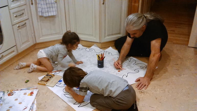 Мы также помимо заданий раскрашиваем большущую раскраску