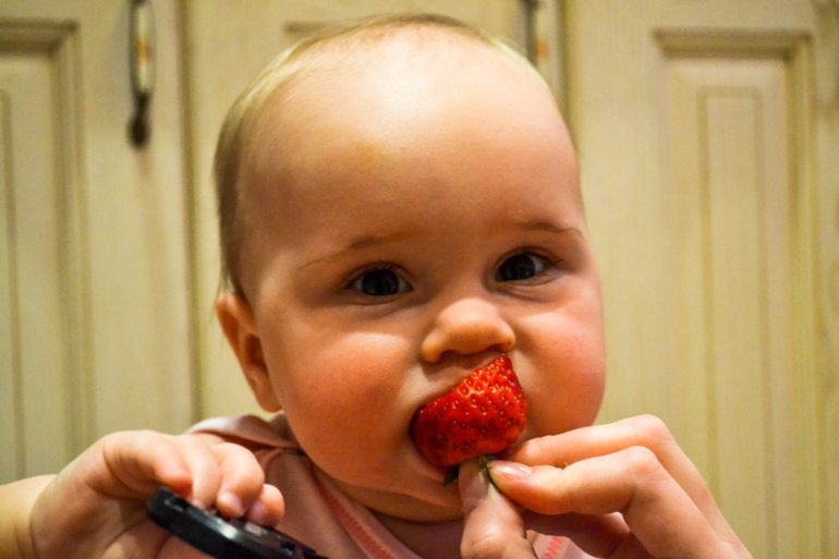 За этот месяц Анастасия научилась: очень хорошо ходить по улице (избавились от зимнего комбеза), поначалу держала за капюшон, умудрилась полетать и расцарапать нос, но зато теперь бегает сама, я только издалека слежу и иногда подхожу, чтобы посадить на горку/качели и т.п. Гулять стало интереснее, но тяжелее. Начались капризы, например, хочет машинку чью-то, а этот кто-то делиться с ней не собирается, оттаскиваю, а у нее слезы! Раньше такого не было, она всегда спокойно реагировала на то, что у нее отнимают игрушки, брала свои другие и отдавала их детям, мол «тебе нужнее»))) Теперь же отбирает обратно, причем может и первая начать отнимать! Надеюсь, это возрастное и скоро пройдет!