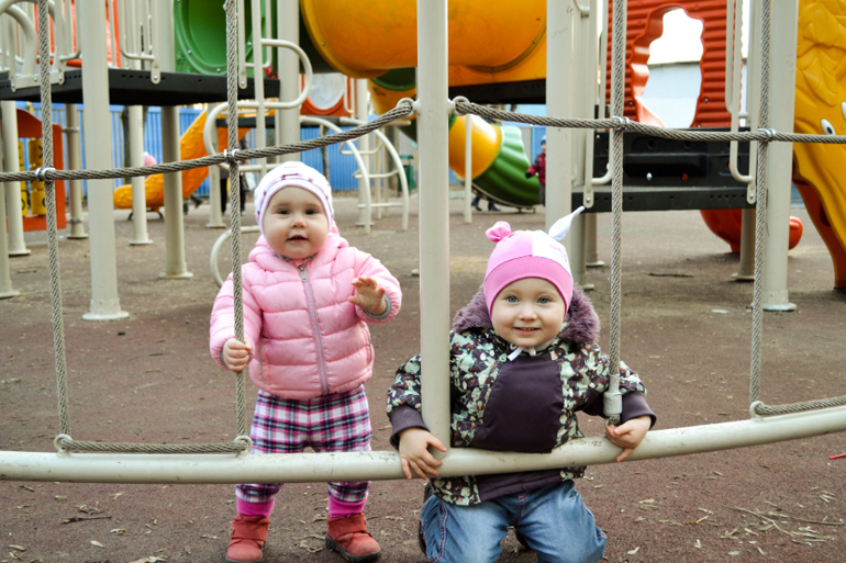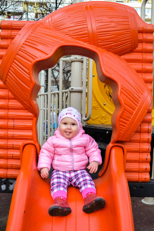 Полюбила кататься с горок, иногда заваливается на спину, иногда получается держать спину (сажаю ее и отхожу вниз ловить, наверху она сама решает, когда спускаться и сама отталкивается или наклоняет тело, чтоб ехать)