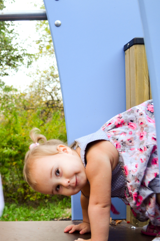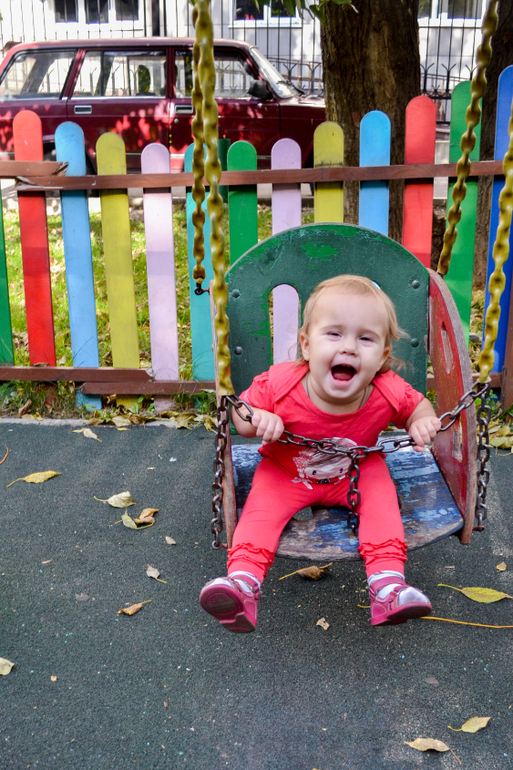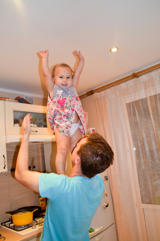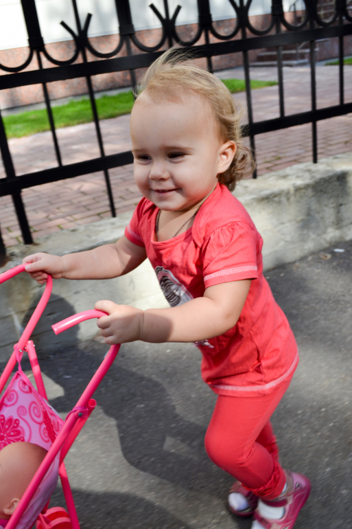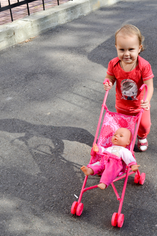 Доченька отлично владеет своим телом, умеет кувыркаться (очень профессионально, как взрослые, не заваливаясь вбок, научилась еще летом, а сейчас вообще целыми днями оттачивает мастерство), лазать по любым лесенкам, перекладинкам, выступам. Если даже нога срывается и она не может нащупать ничего под ногами, то не отпускает руки, понимая, что может упасть, а висит на перекладине довольно долго, пока я не сниму ее. Не разрешает ей помогать, даже если ей тяжело куда-то залезть, открыть дверь и т.д., все равно старается и пыхтит, пока не получится. Говорит «Настенька, Настенька, Настенькаааа!», это означает, что она будет делать это САМА! Очень радует ее упорство! Однако именно из-за ее упорства сложно уговорить ее делать то, что нужно мне (например, пописать, а не играть с куклой или ехать в коляске, а не идти ножками). Но я нашла свой подход, даю ей на выбор 2-3 предложения, удобные мне (например, «будешь писать в ванну, на горшок или в туалет?» Или «кто тебя повезет на коляске, мама или папа?»), дочь определяется, выбирает то, что ей по душе, чувствует себя значимой и мы приходим к консенсусу.