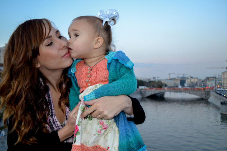Настя очень нежная, любит обниматься и целоваться, когда у нее хорошее настроение. Каждый день подходит сама и крепко обнимает или целует по 20 раз на дню. Я в эти моменты просто млею)) Еще стала классно целовать много раз подряд в разные части лица. 2 месяца назад повадилась засыпать с утра со мной в кровати, лежа на спинке, головой на моей руке, а я ее обнимала. Очень уютно! Но сейчас спит до утра в своей кроватке, может с утра перелезть со мной просто поваляться в обнимку. Очень любит грудь, хотя ГВ завершено уже 3 мес назад, открывает ее, наглаживает/нацеловывает, называет ласково «титька» (титечка), тоже «Ч» не проговаривает. С папочкой у них вообще любовь-морковь, если муж дома, то ко мне она подходит редко. Иногда бывало даже, если она у него на руках, не давала мне обнять их, отталкивала. Но мы с мужем ей объяснили, что она маму обижает и т.д., она сразу исправилась и поцеловала меня, извиняясь, больше так не делает. Она вообще всегда извиняется и жалеет, если мы ударимся или если найдет на наших телах царапины, синяки и болячки (и даже родинки), жалобно говоря «бо-бо». Также она всегда здоровается и прощается, часто просто на улицах с незнакомыми людьми, со знакомыми всегда. В наш ближайший к дому магазин она вообще заходит как королева, с ноги вынося дверь, с порога начинает всем махать «привет», все охранники и продавцы ее знают с младенчества, есть у нее там любимая продавщица, к которой она сразу бежит, они друг друга очень любят, а Насте она постоянно дарит сладости. И уходя всегда всем машет и говорит «пока», «пока-пока!»
