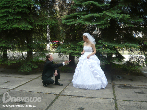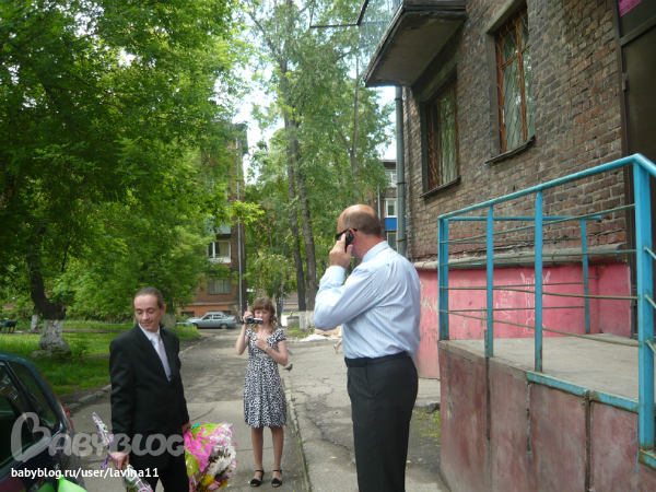 И отправляемся в ЗАГС, а какая-то бабулечка с первого этажа подглядывает в окошко)))