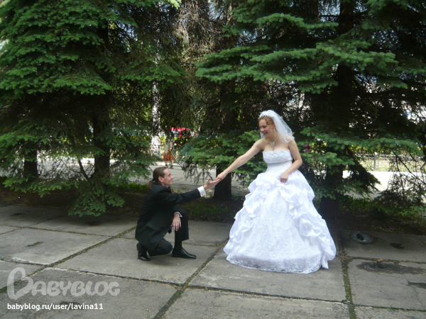 Когда мы выходили из ЗАГСА, меня что-то на ступеньке зацепило за платье. Видать мы ЗАГСу тоже понравились)))