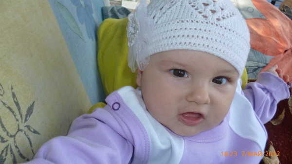 ходили в больницу,вес моей крохи 8100,рост 68см))))))зубика по прежнему ни одного нет.говорим уже и мама и папа и что-то типа баба))))))ползаем,ходим за ручку,любим играть в ку-ку,индейцев и еще много всего))))))))))с каждым днем люблю ее все больше и больше