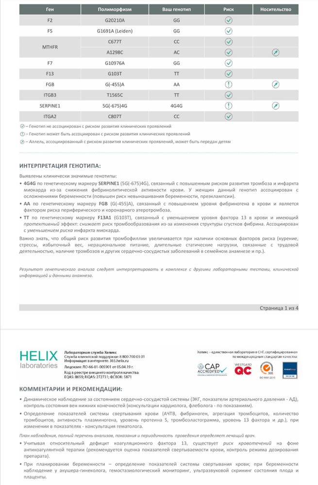 Планирование беременностиВчера получила результаты генетического исследования на предрасположенность к тромбофилии.