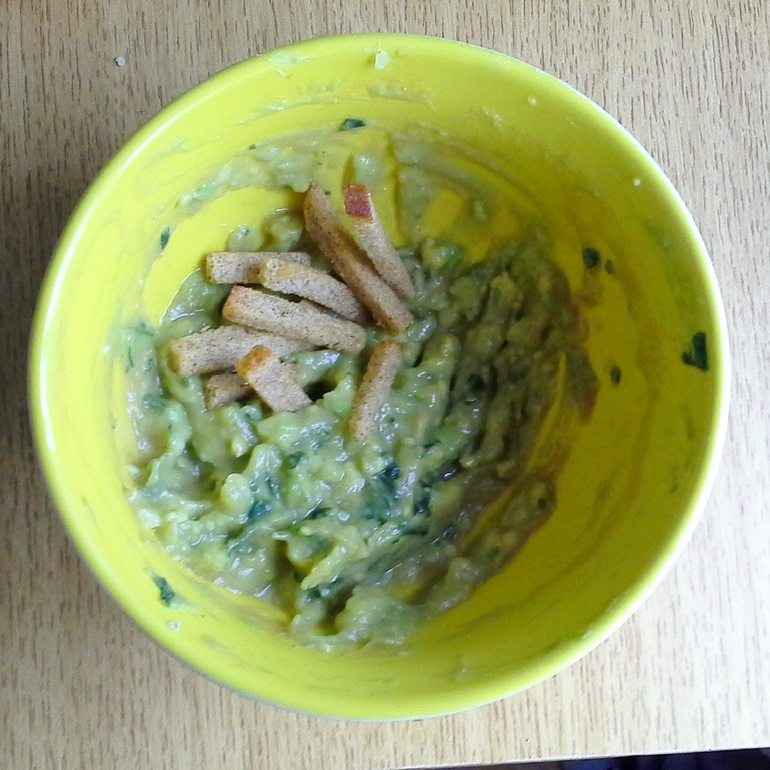 По рецепту туда еще чуть помидоров, мелко нарезанный лук и петрушка. И у меня еще с сухариками. Это уже остаточки)