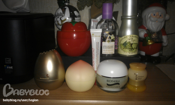 Справа стоит ББ крем ХоликаХолика Бебиблум для жирной кожи, люблю его нежною любовью.С его помощью тетенька милиционер с лицом как у панды(утром, после безсонных суток) , почти мгновенно преображается в милую девушку которая очень хорошо выспалась хД и никаких синяков под глазами ага.