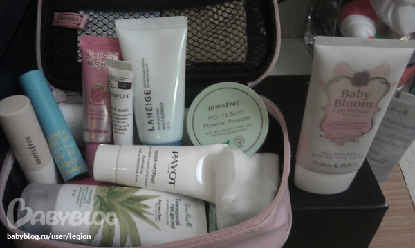 Потом небольшая косметичка с кучей всякоразных пробников, в основном умывалок(корея естессно и обычно их больше там лежит раза в 2)