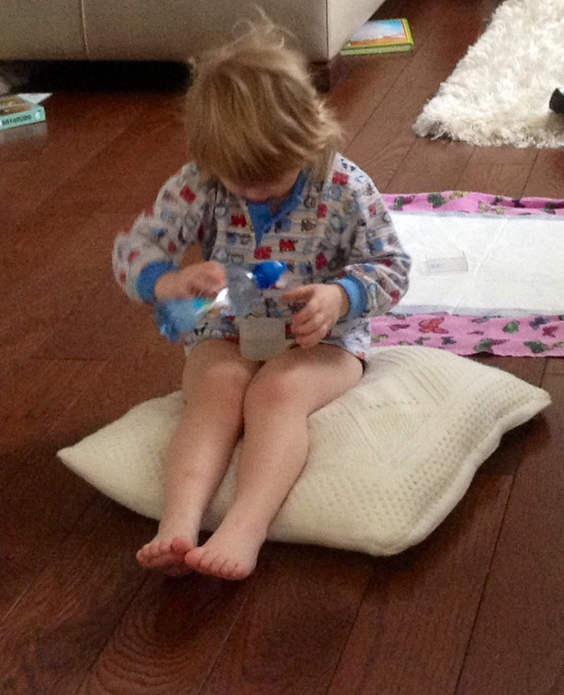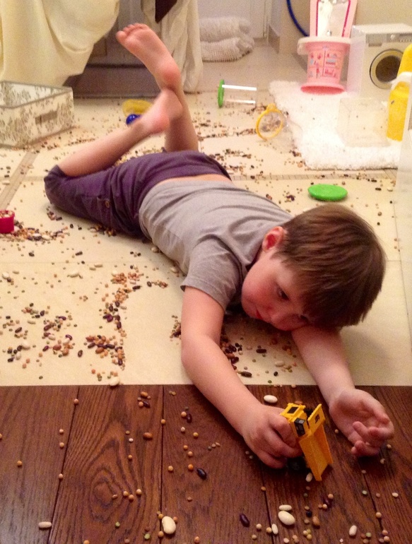 Никита потом вытер полы полотенцем а я кинула подушку на батарею. Опять вроде порядок))). Но нет.... Они нашли крупу. А я то думала что они дружно расселись по горшкам. В итоге чистые полы в ванне!