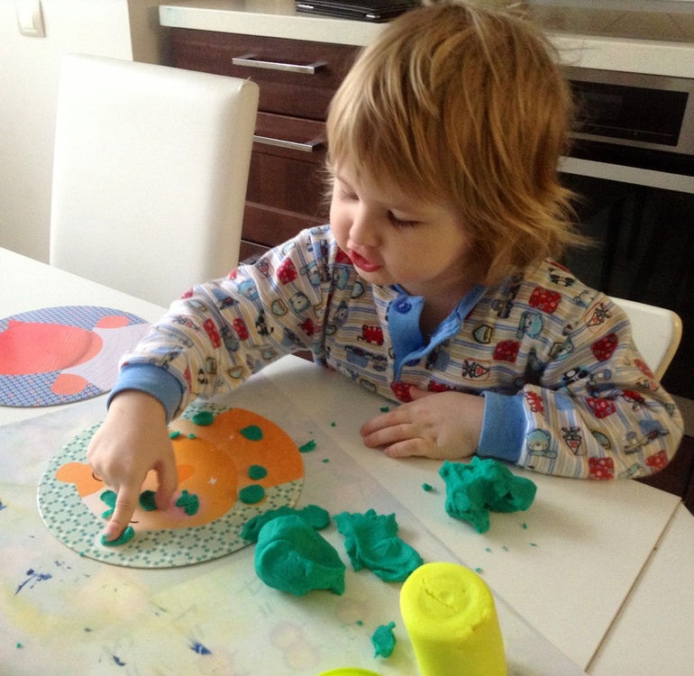 Никитос препарирует пластилиновое брюхо самолета)))