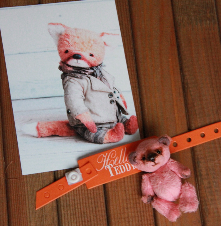 Браслет участника - подарок от мужа, маленький мишечка от Галины Щербаковой, и открыточка от Ирины Архиповой.