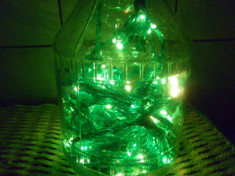 при свете «нового» светильника. Положила в банку зеленую гирлянду.