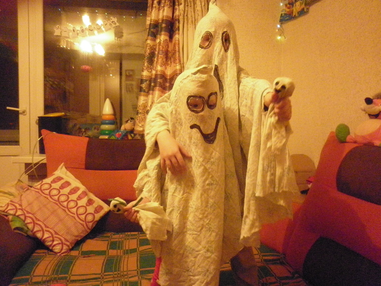 Вот это фантазия, вот это выдумка!!! Привидения, просто оборжаться можно))) Похожи на лису Алису и Кота Базилио! Маманька, да ты просто большая умница! Так организовать и порадовать детей, мне не дано)