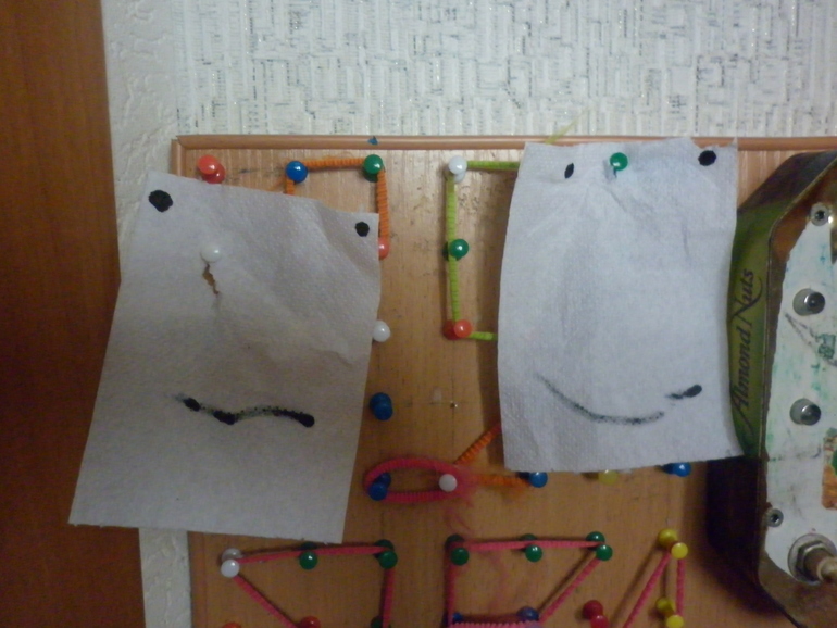 Сема нарвал т.б. по перфорации и нарисовал мордочки. Развесил по комнате. Сказал, что прилетели новые приведения.