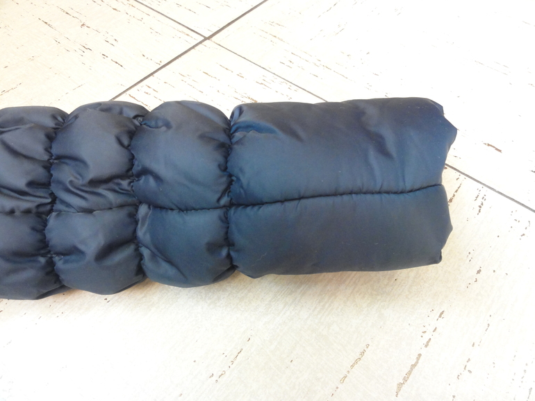 Наполнитель изософт, теплый и легкий. Ребенку очень удобно в нем ходить, бегать, играть. Смотрится очень красиво. Всё продумано! Фотку посмотрю сейчас.
