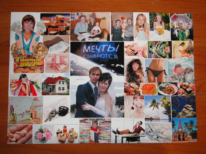 Вот она! Распечатала, вставила в рамку и поставила у кровати. Теперь жду, когда все начнет исполняться! Делала по всем правилам, которые нашла в и-нете